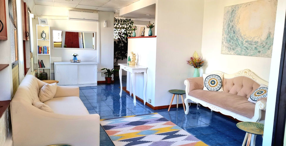 6. Amplia sala de espera, luminosa, con libros, música relajante y posibilidad de cuello de masajes y pintar mandalas.